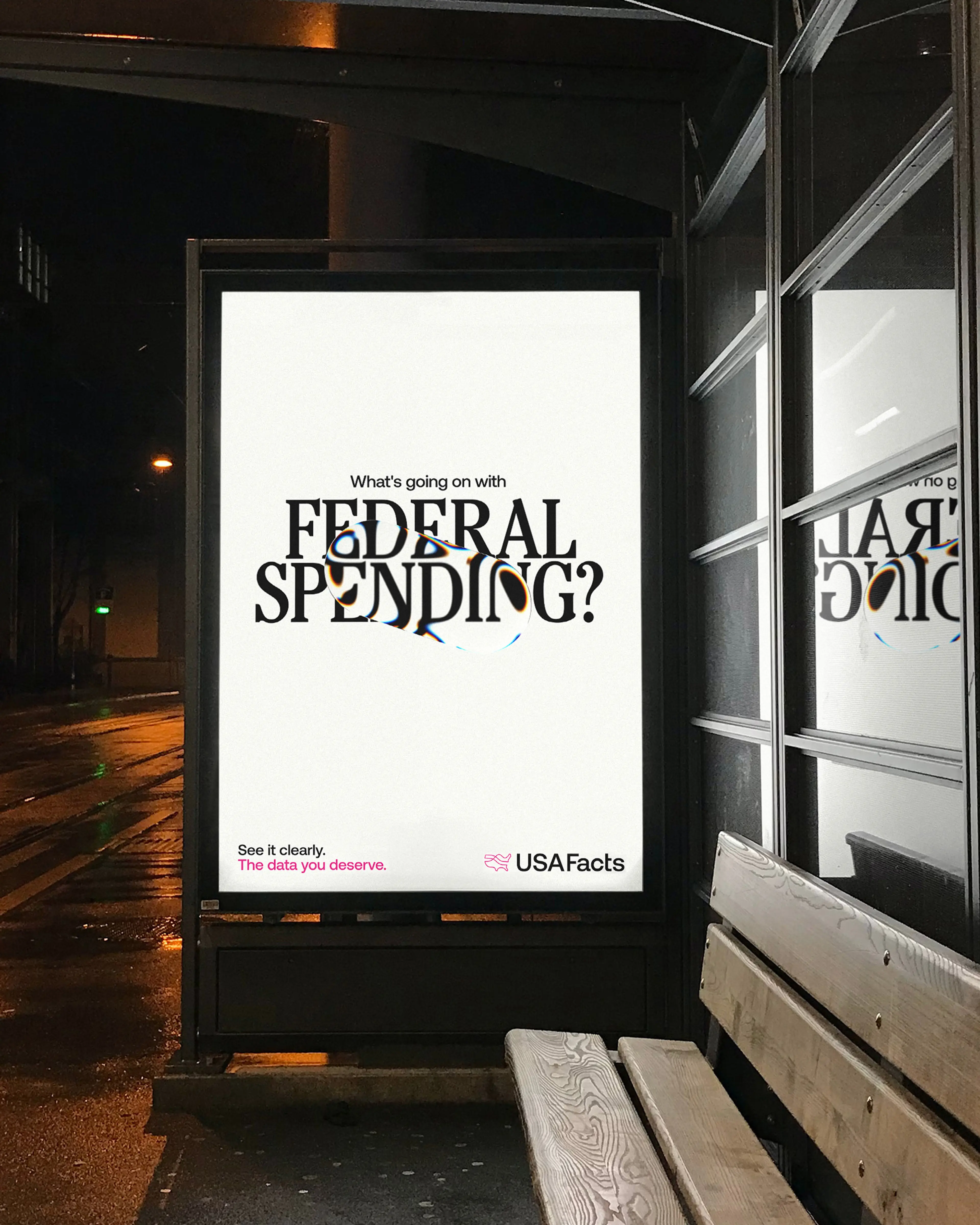 The activation introduced passersby to USAFacts’ mission: in a world where everything is blown out of proportion to push an agenda, public data keeps us grounded. We amplified the campaign with distorted OOH ads, bending and twisting topics like inflation, healthcare, and government spending. The result? Over 17 million impressions and 100% share of voice in the DC area.