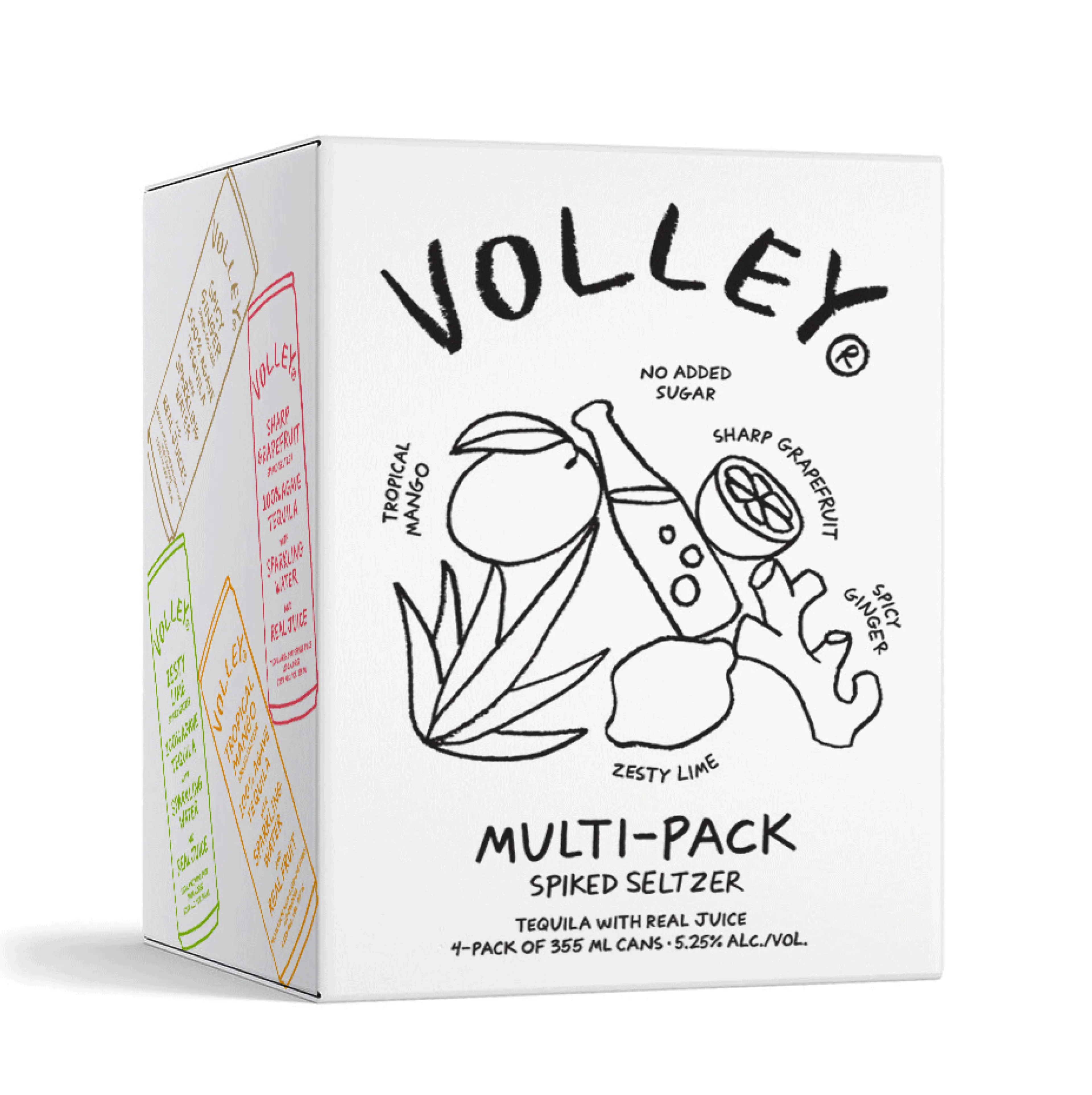 Married couple Chris Wirth and Camila Soriano set out to create the first wholesome cocktail company: with a recipe composed of tequila, sparkling water, a squeeze of juice and nothing else, their unnamed cocktail was poised to outshine the most popular ready-to-drink canned options, bubbling over with carbs, calories and mysterious ingredients. We partnered with them to launch Volley and bring a fresh, summery fizz to the category. With a preppy name, raw aluminum cans marked by sharp flavor colors, a cheery, line-drawn mascot named Spike, and our very own handwritten Volley typeface, the brand balances easy-breezy vibes at every turn. The system feels pure, honest, and delicious—all in the spirit of good, clean fun.